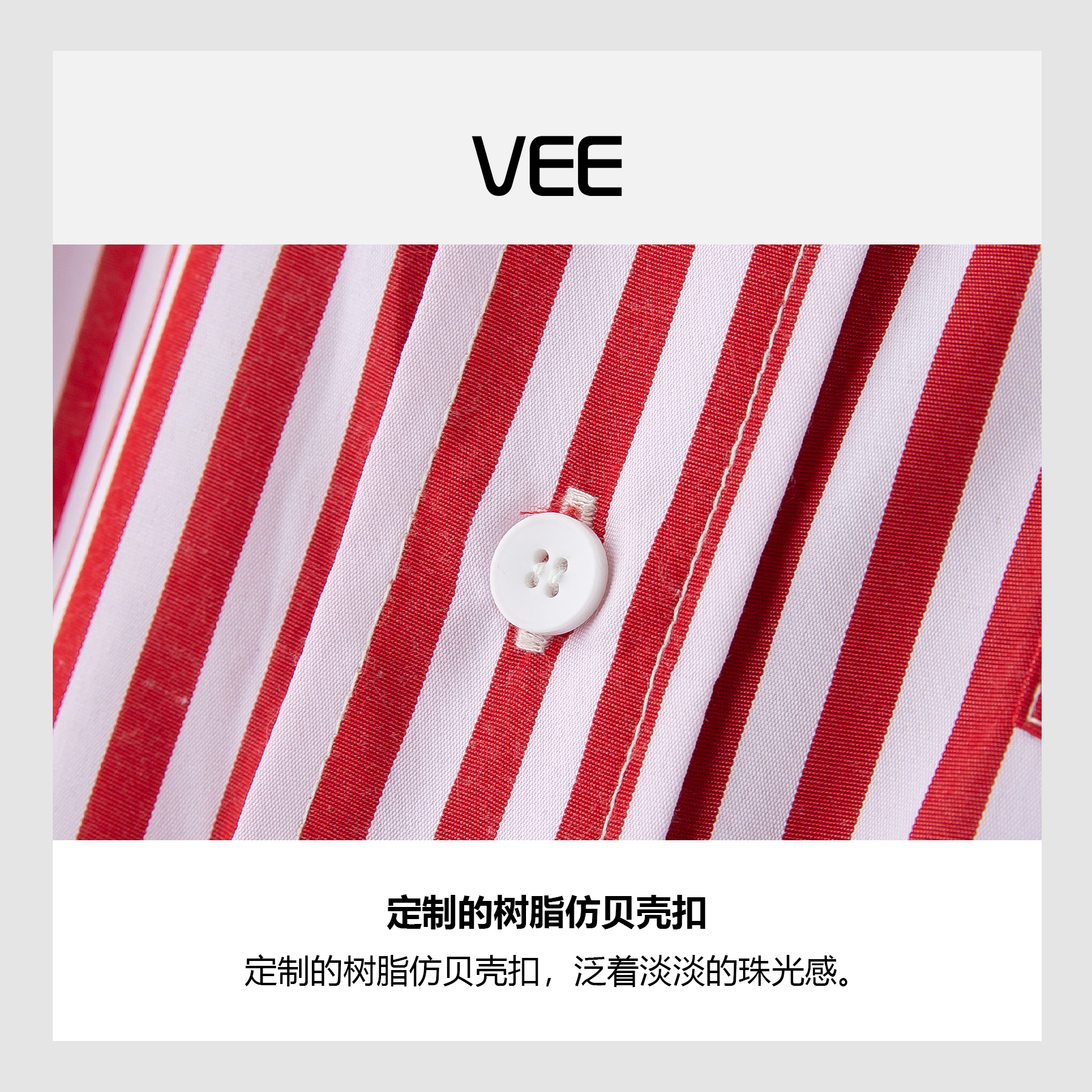 VEE【幸运时光】春秋装新款翻领经典红色条纹衬衫衬衣上衣外搭女