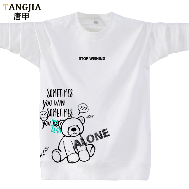 t恤长袖男青少年春秋季新款卫衣薄款圆领套头纯棉打底衫宽松潮流