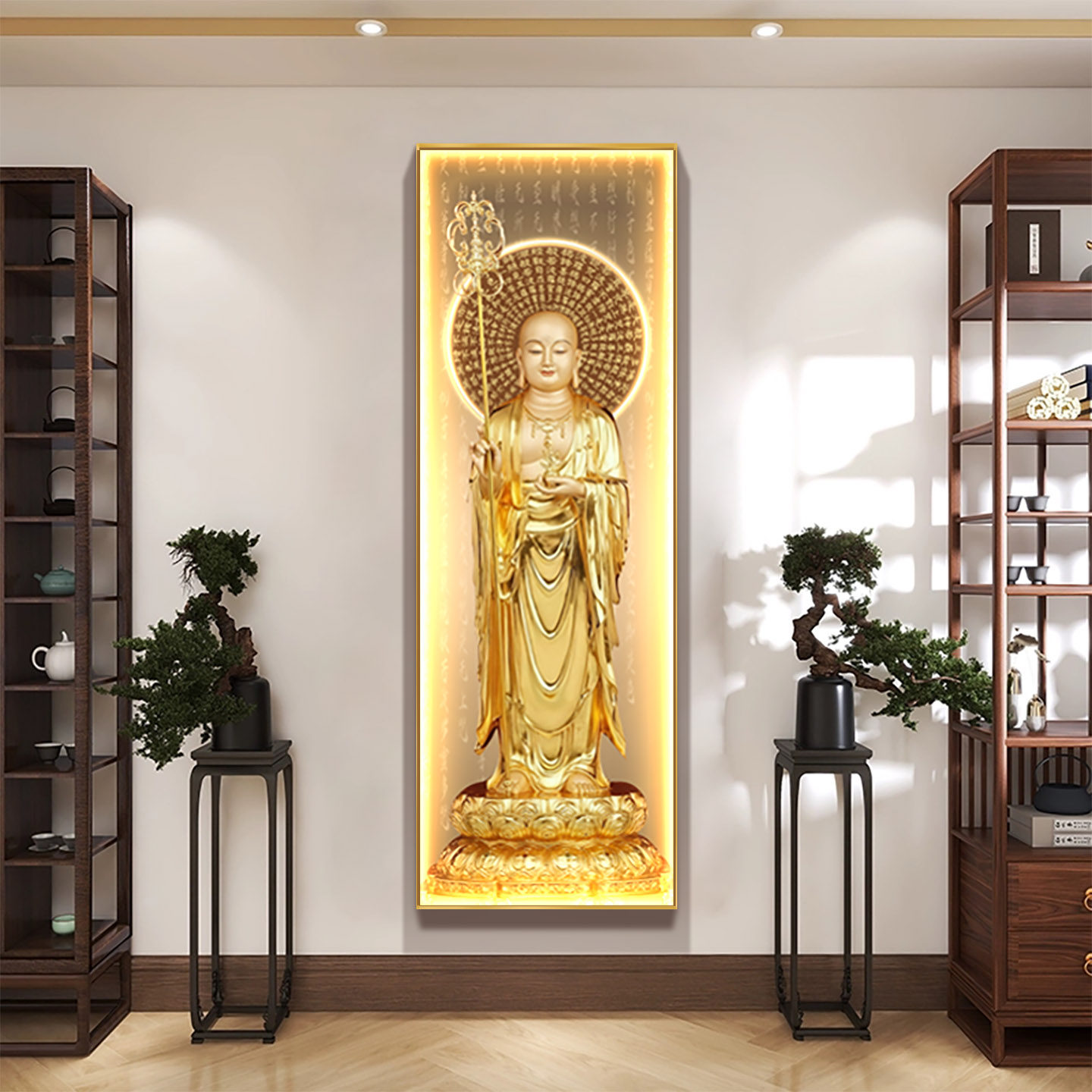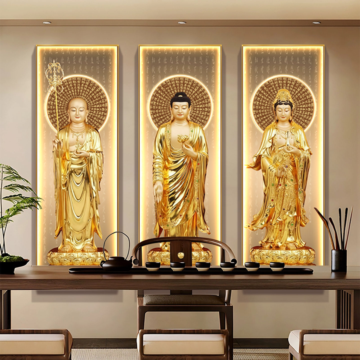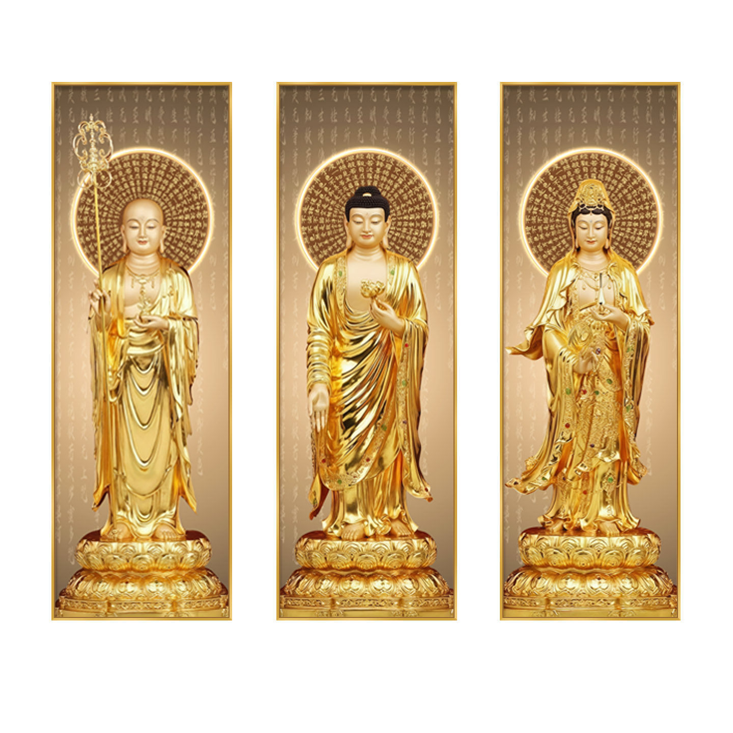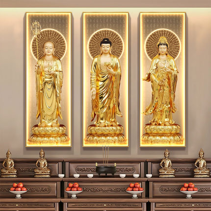 娑婆三圣观音地藏王释迦牟尼佛装饰画站像壁画供奉佛堂佛像挂画灯