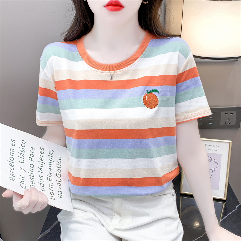 夏季纯棉薄款短袖女刺绣百搭上衣