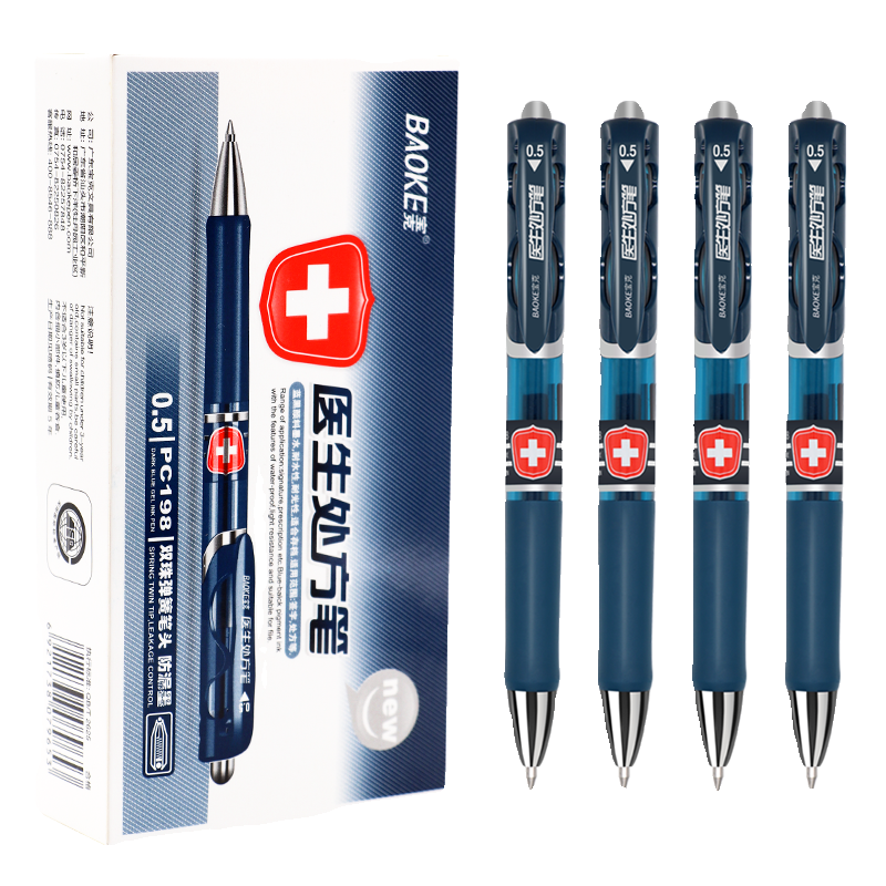 宝克蓝黑中性笔医生处方专用按动水性笔墨蓝子弹头护士按压笔198