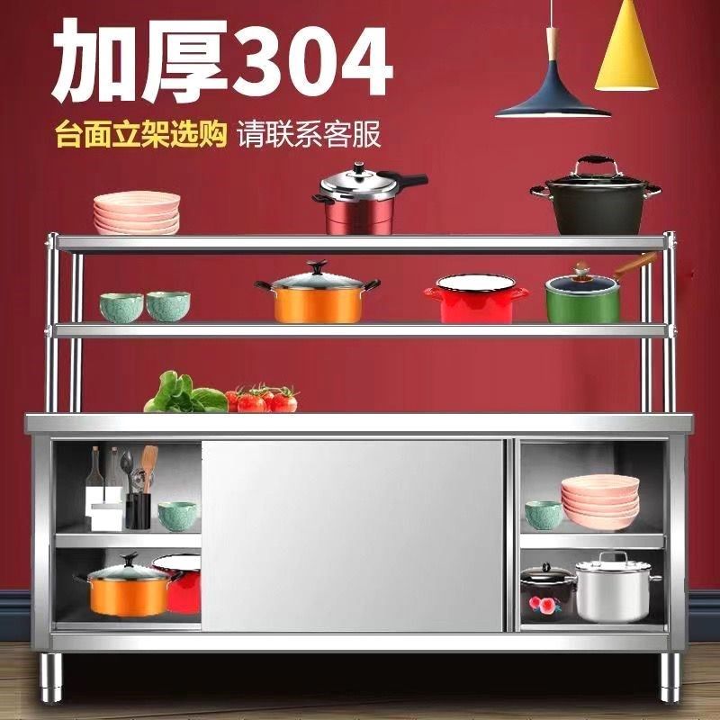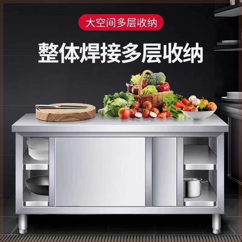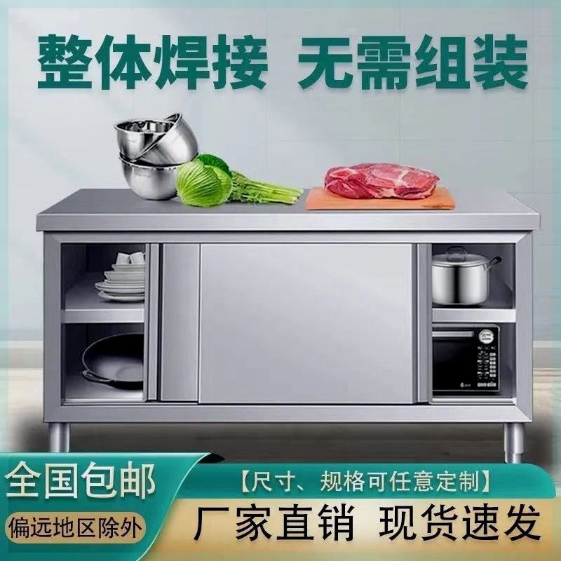 特厚1.0焊接304不锈钢工作台整体厨房橱柜操作台厨房酒店拉门放碗