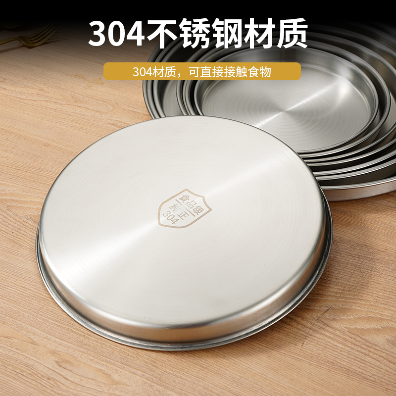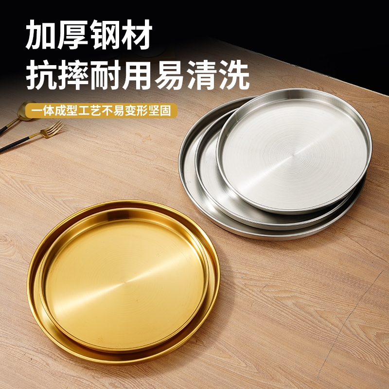 金色圆盘304不锈钢托盘创意糕点盘子 甜品糕盘菜盘蒸盘自助烤肉盘