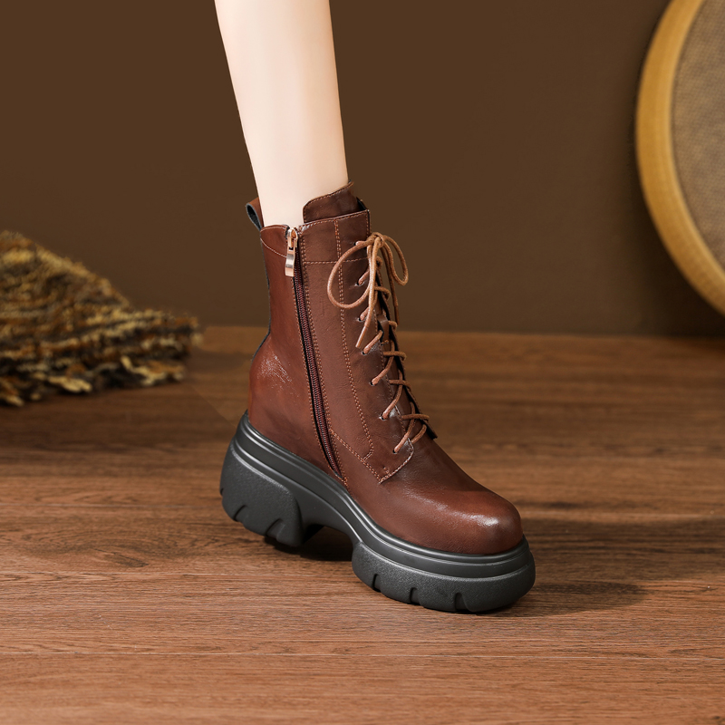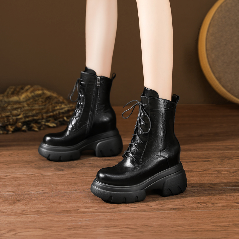 11.5cm厚底粗跟小个子增高马丁靴女英伦风秋冬真皮内增高短靴女鞋