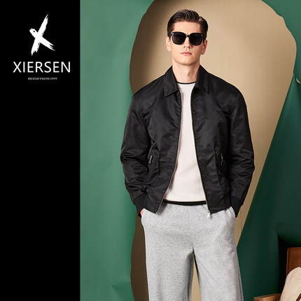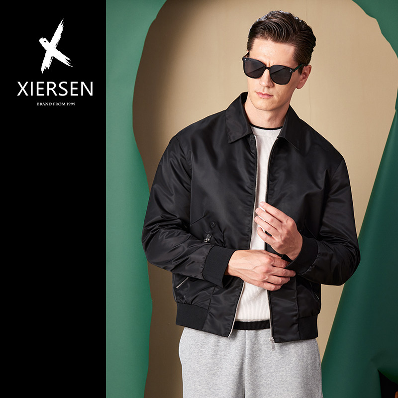 欧洲站秋冬轻奢新款男时尚商务休闲翻领夹克百搭外套再生尼龙修身