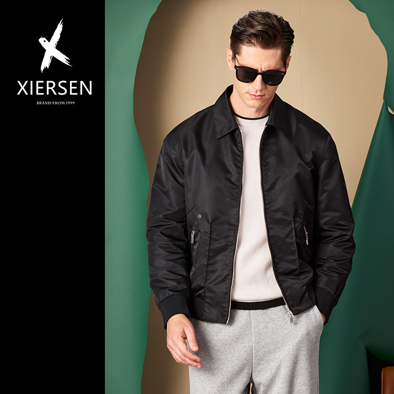 欧洲站秋冬轻奢再生尼龙翻领夹克