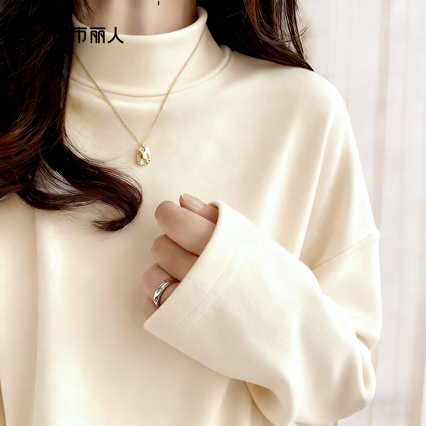 都市丽人白色打底衫内搭女2025新款秋冬加绒半高领外穿长袖上衣X