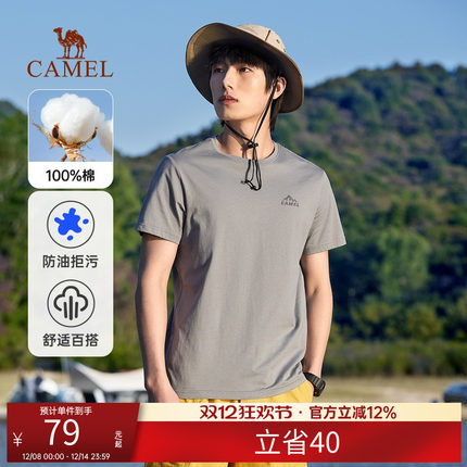 骆驼男装防污运动T恤情侣户外休闲圆领短袖T恤百搭纯色纯棉T恤女