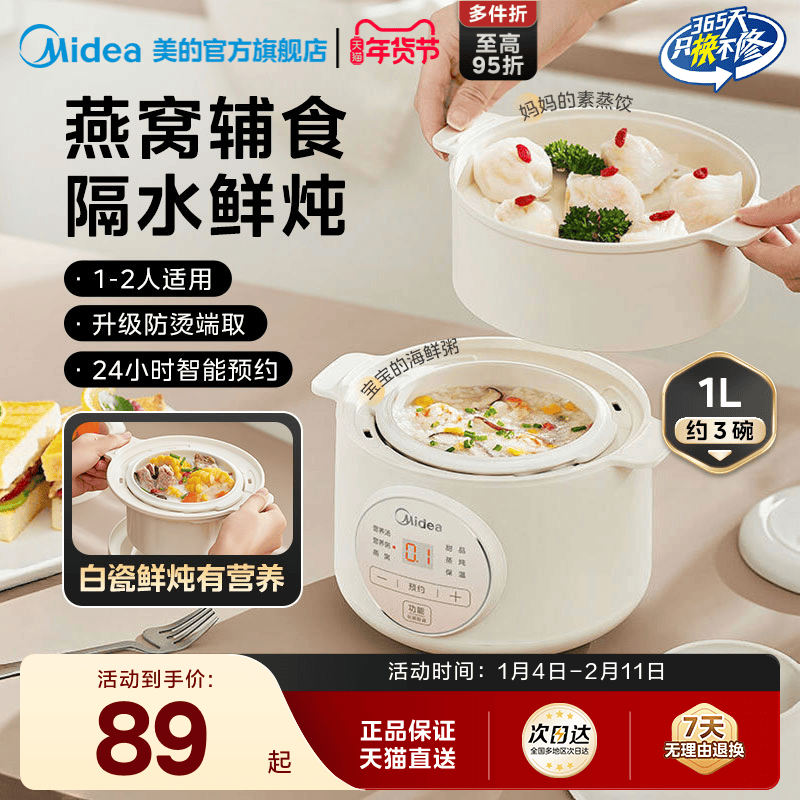 美的电炖锅宝宝婴儿辅食锅煲汤燕窝隔水家用电炖盅料理机官方正品