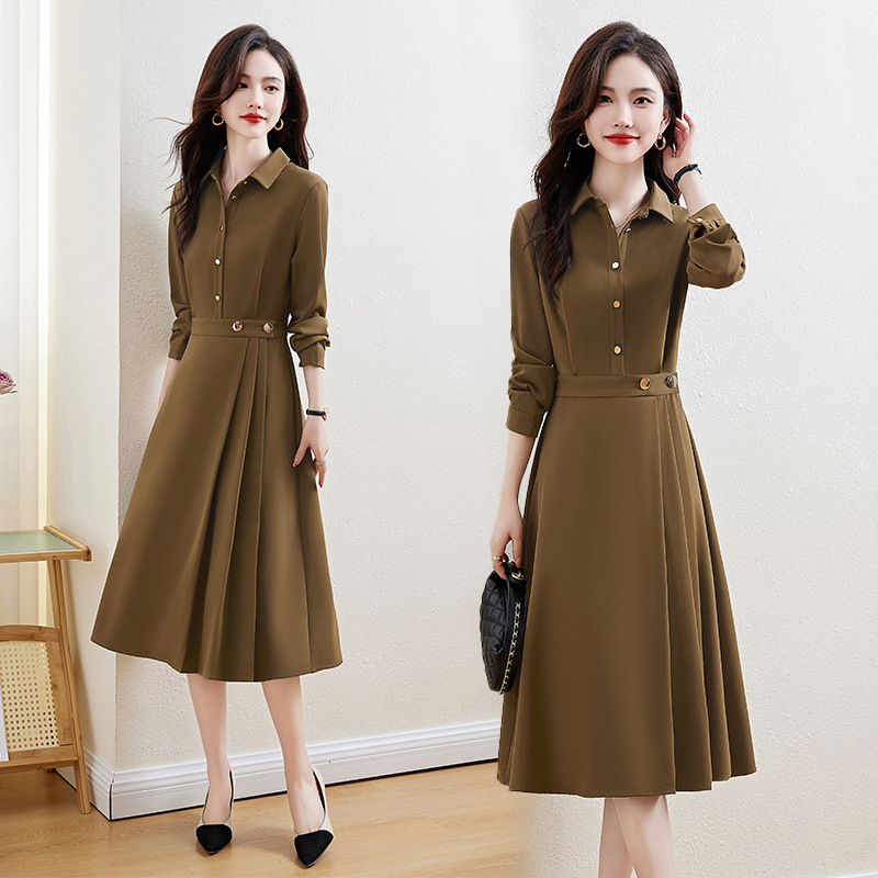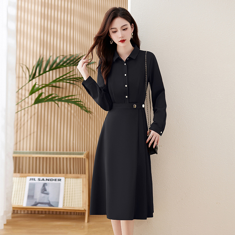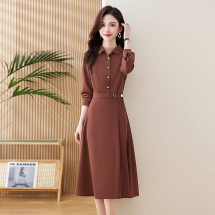 歆艾尚静女装2025正品新款领气质女神范通勤长袖打底连衣裙