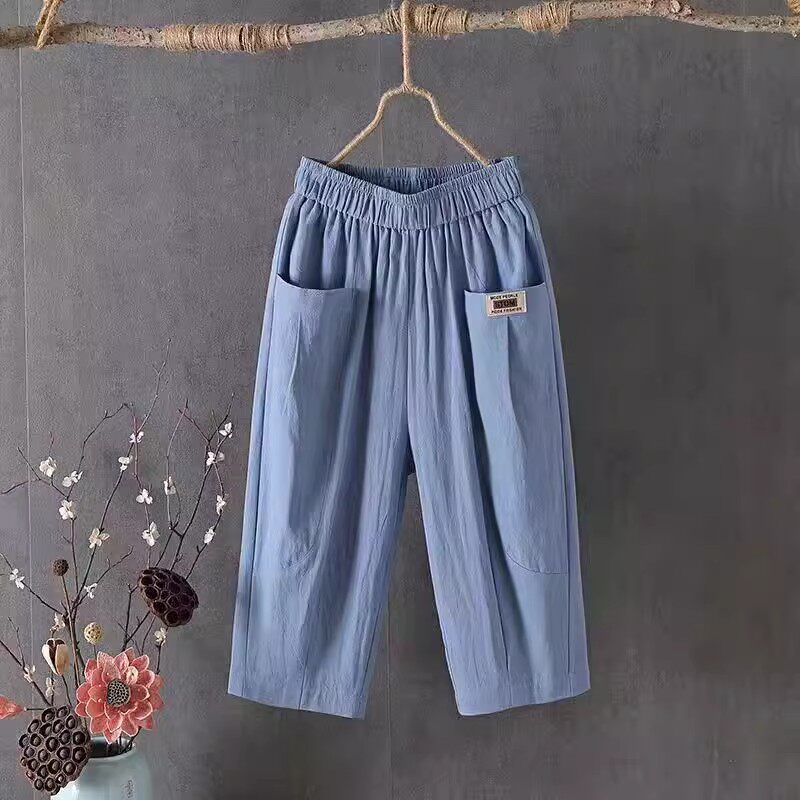 棉麻七分裤女夏季薄款亚麻中老年人大码休闲裤显瘦宽松高腰哈伦裤