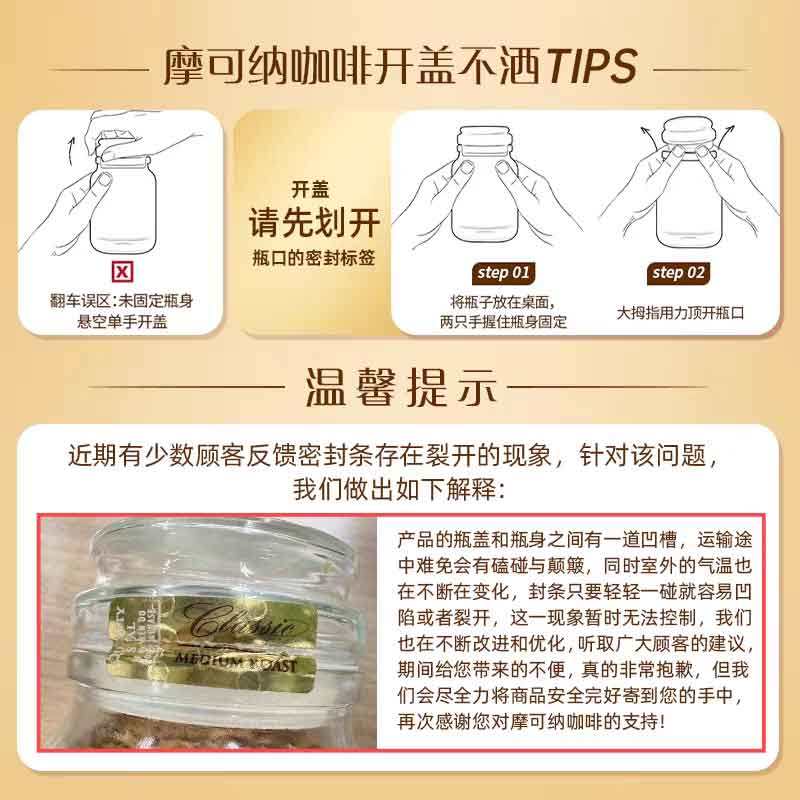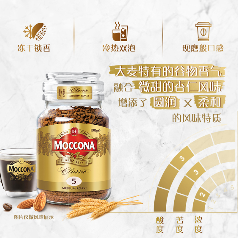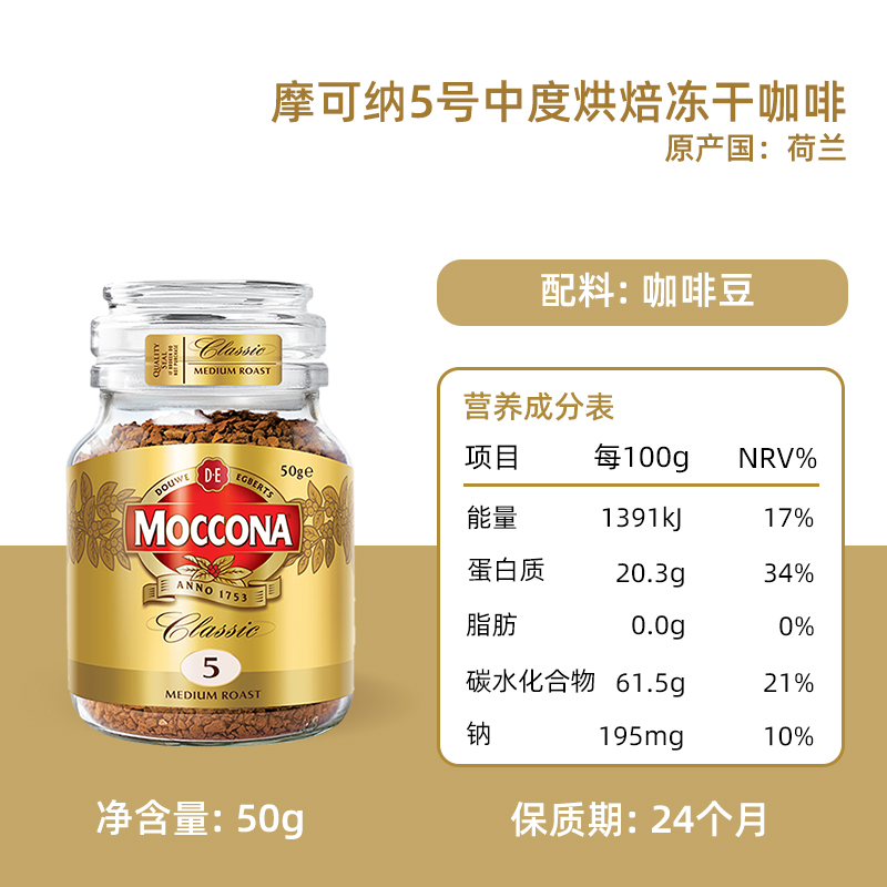 【进口】摩可纳Moccona冷萃冻干黑咖啡中度烘焙50g美式速溶