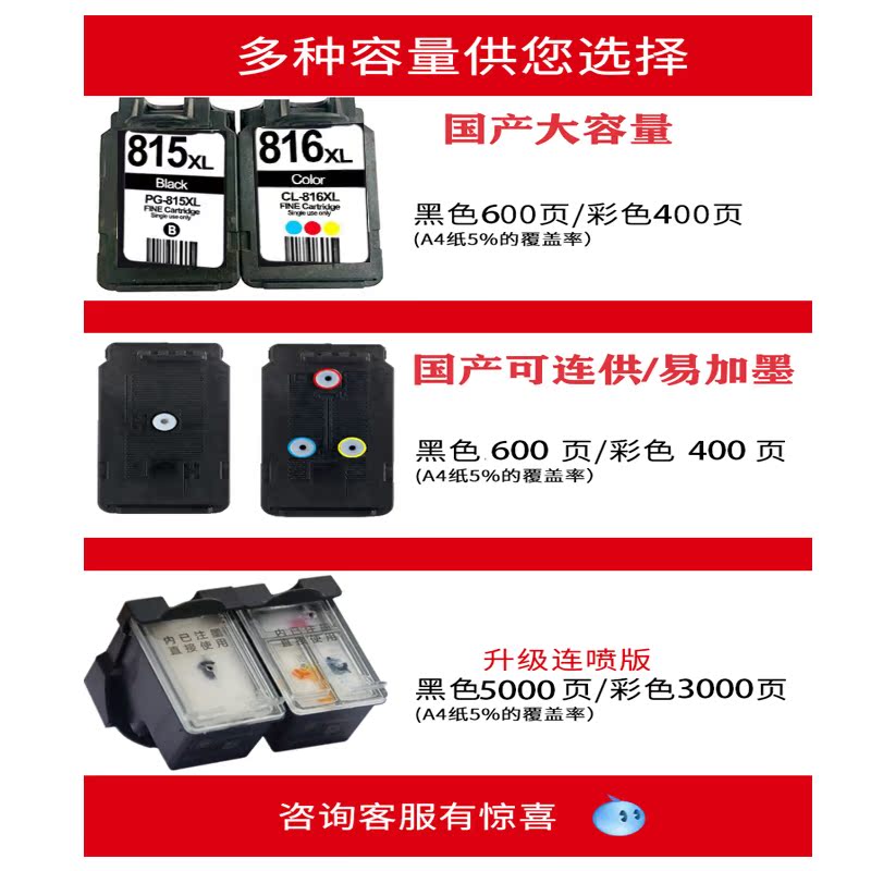815墨盒适用佳能PG815XL黑色 CL816彩色MP288 MP236 IP2780打印机