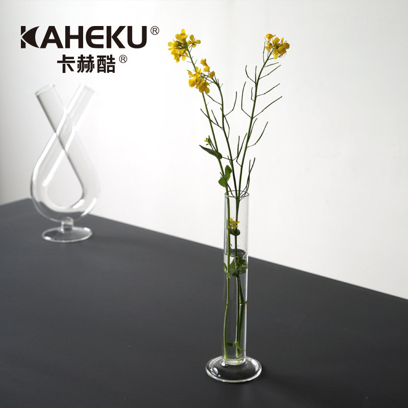 kaheku欧式直管高脚简约透明玻璃花瓶单只一排花瓶散香组合小花插