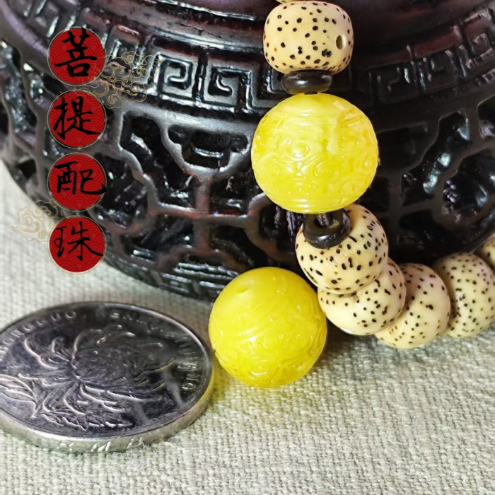 天然原矿俄料蜜蜡雕刻回纹祥云圆珠金刚星月菩提手串配珠diy文玩