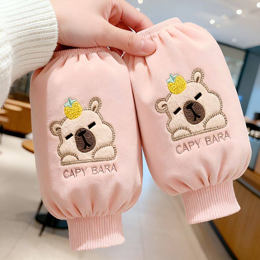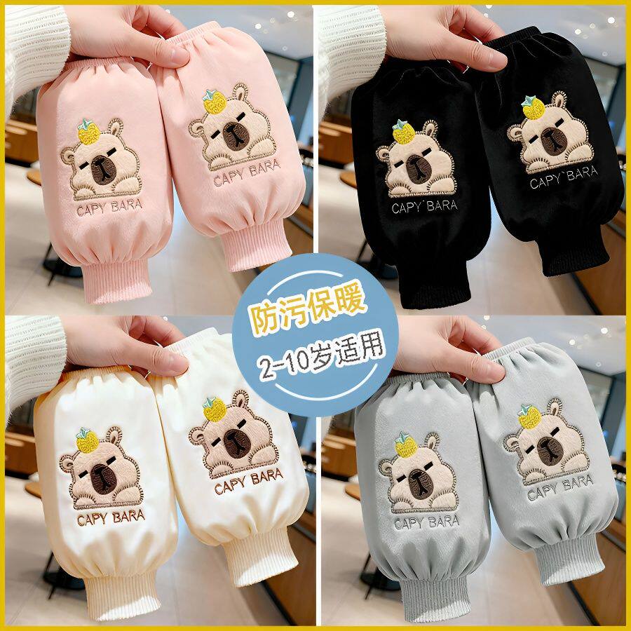 儿童袖套女中长款宝宝螺纹束口防污套袖卡通学生绒布耐脏女士护袖