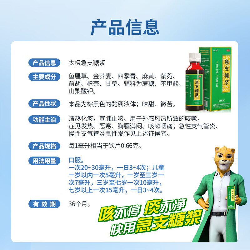 【自营】【太极】急支糖浆120ml*1瓶/盒咳嗽发热支气管炎宣肺止咳鼻塞