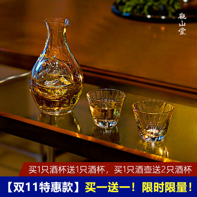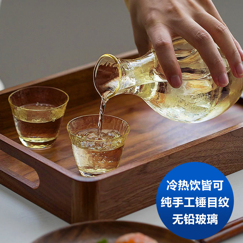 【买1送1】日式琥珀色锤纹冰酒壶家用手工创意耐热酒壶手工清酒杯
