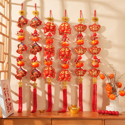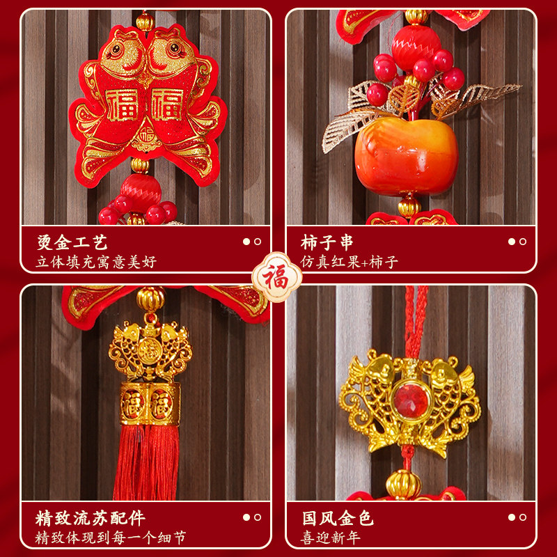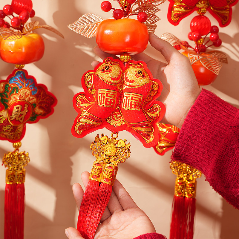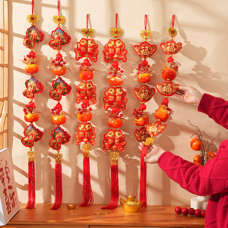 2025蛇年喜庆挂件室内春节装饰品中国结鱼串墙上福字辣椒灯笼挂串