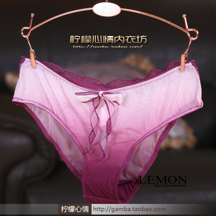 网纱渐变面料全透明透气性感诱惑蕾丝低腰三角裤女士内裤全棉底裆