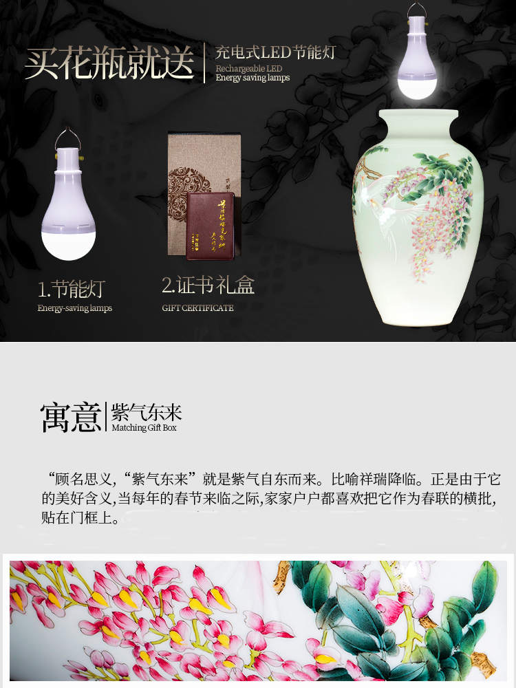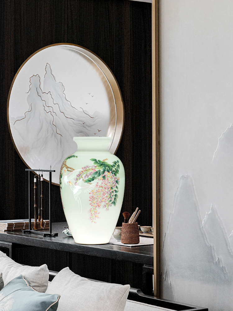 景德镇陶瓷花瓶插花手绘中式家居客厅装饰品博古架瓷器工艺品摆件