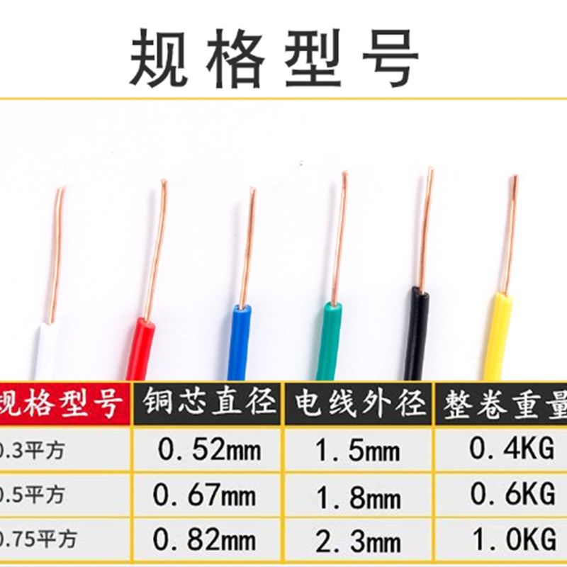 BV 0.3 0.5 0.75平方AV电线单股单芯硬铜线电子线飞线导线电路板