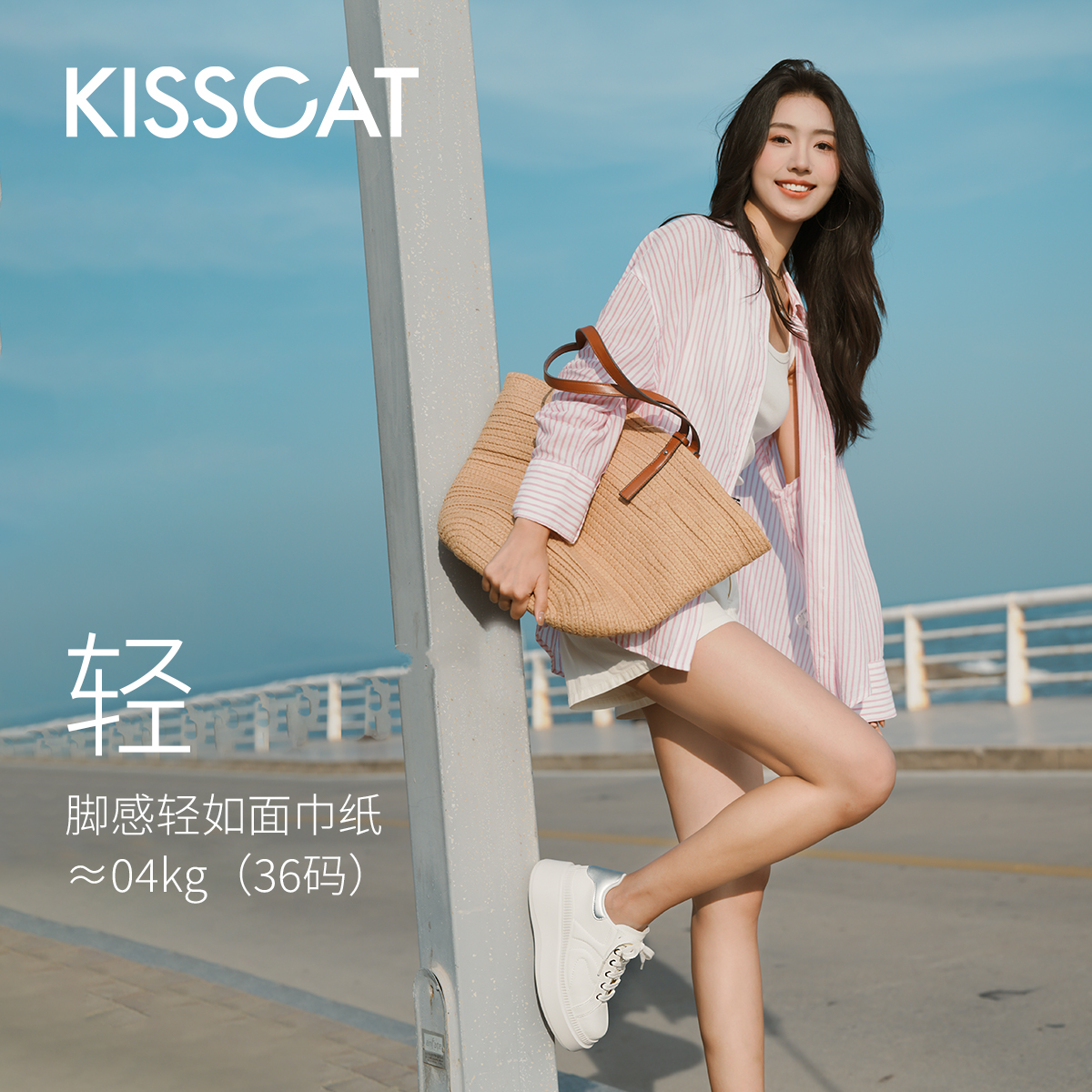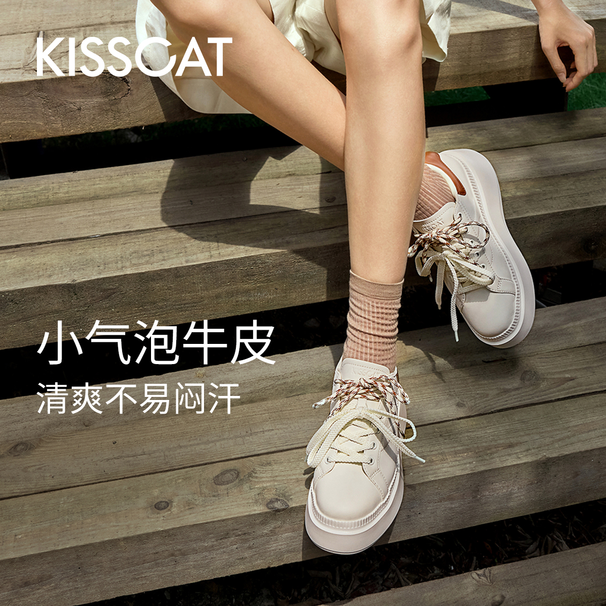 [许妍/田曦薇同款]接吻猫[8cm内增高]饼干鞋休闲厚底小白鞋女板鞋