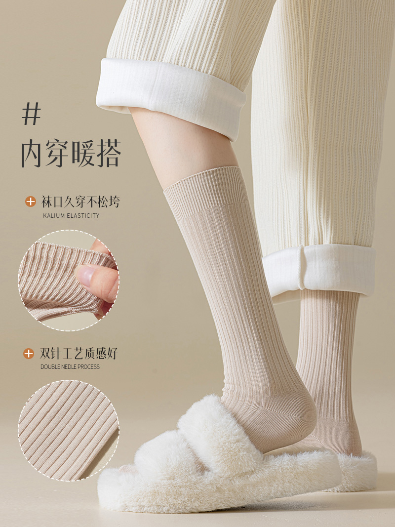长筒袜女秋冬纯棉日系jk小腿袜米色显瘦半截长腿中筒及膝高筒长袜
