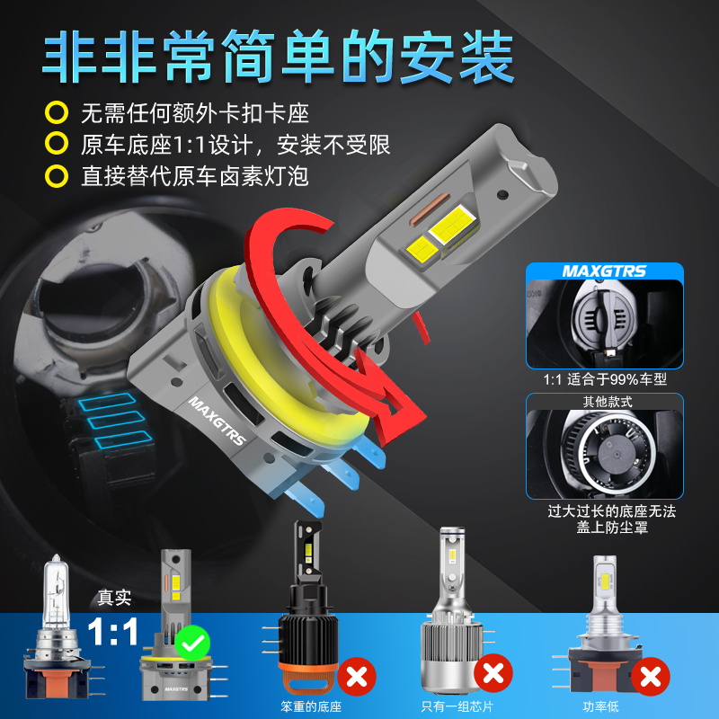 汽车led大灯H15远光+日行灯泡途安高尔夫7嘉旅博瑞夏朗锐界暖黄光