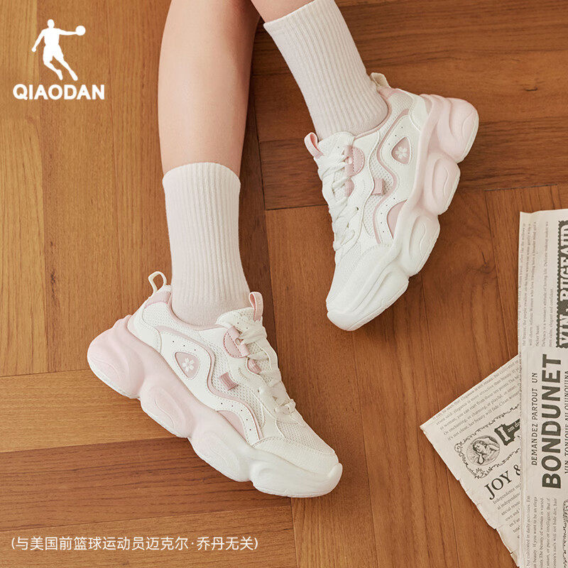乔丹女鞋秋冬厚底增高休闲鞋2025新款网面百搭运动鞋粉色老爹鞋子