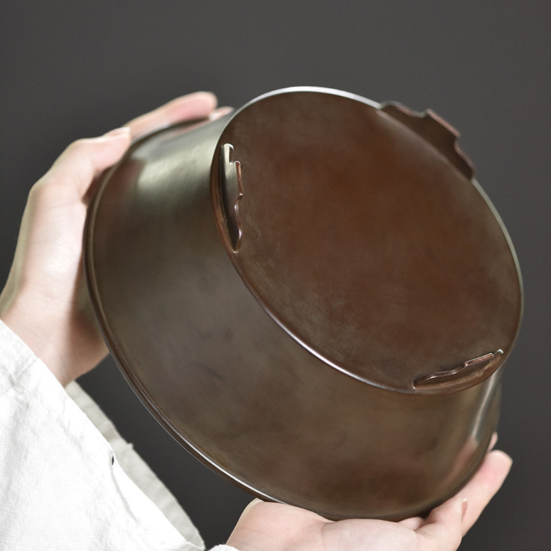 复古铜茶洗缸大号水盂功夫笔洗茶具盆配件黄铜中式家用茶杯洗茶碗