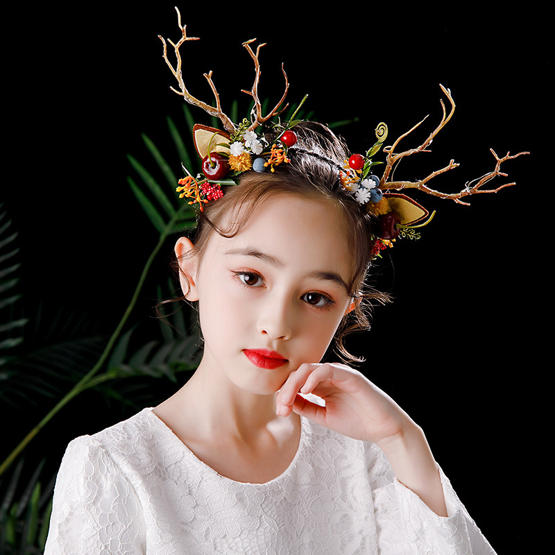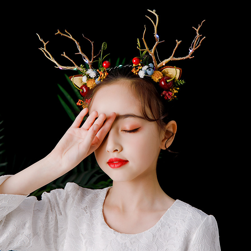 新款女童圣诞节鹿角发箍发饰森系女孩红色儿童头箍小朋友可爱头饰