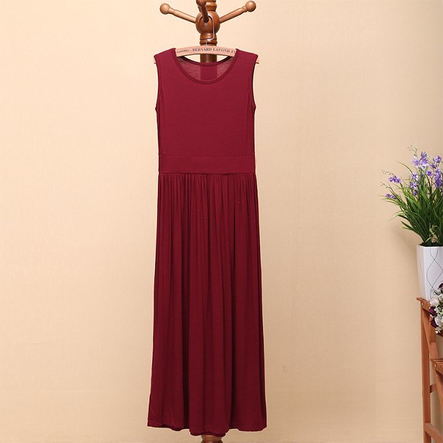 夏秋款莫代尔长裙打底背心连衣裙波西米亚大摆长裙无袖宽松女装
