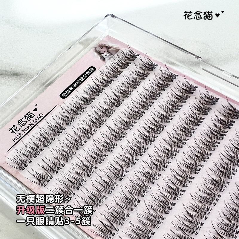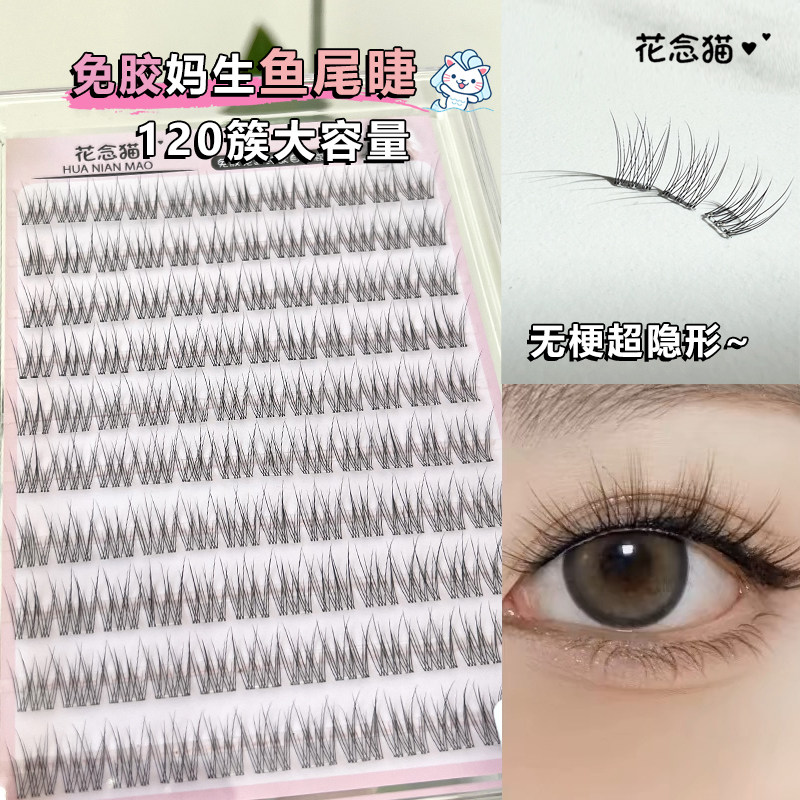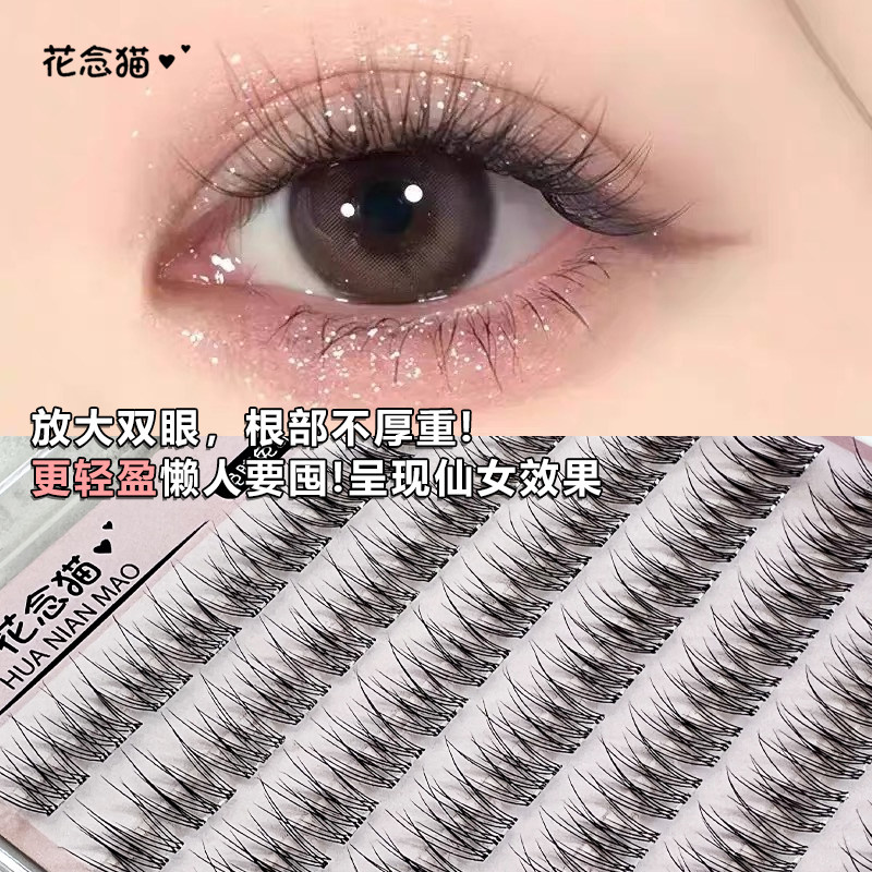 花念猫免胶鱼尾透明无梗假睫毛自然分段超自然单簇日常懒人素颜