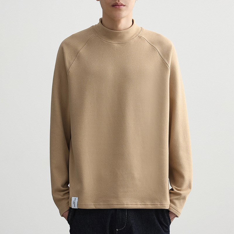 2025春季新品重磅半高领男士长袖T恤双面绒德保暖打底衫宽松套头