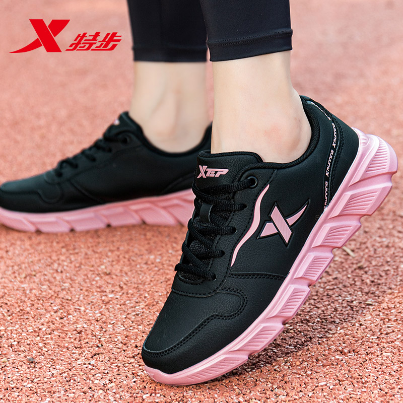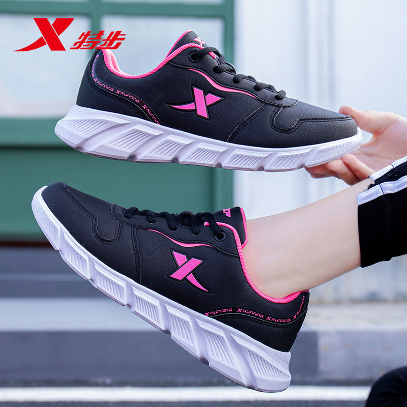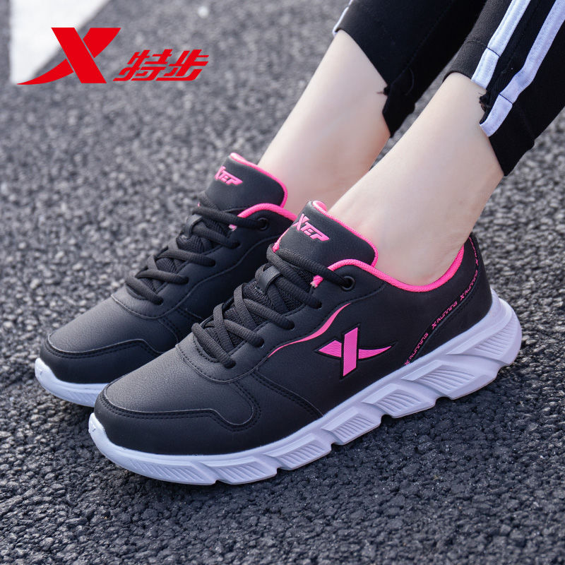 特步运动鞋女鞋冬季新款皮面防水黑色休闲鞋官方旗舰店女士跑步鞋