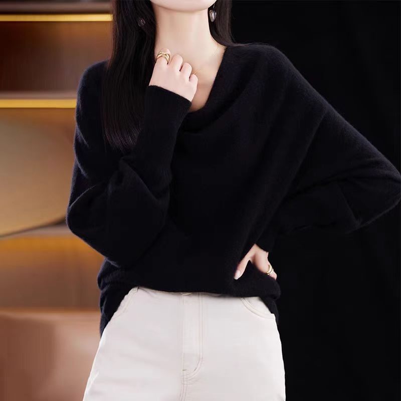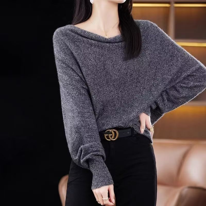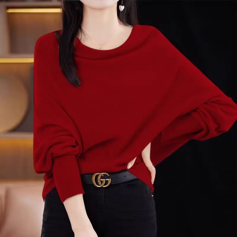 新款蝙蝠衫韩版针织衫针织毛衣上衣宽松秋冬慵懒设计蝙蝠洋气套头