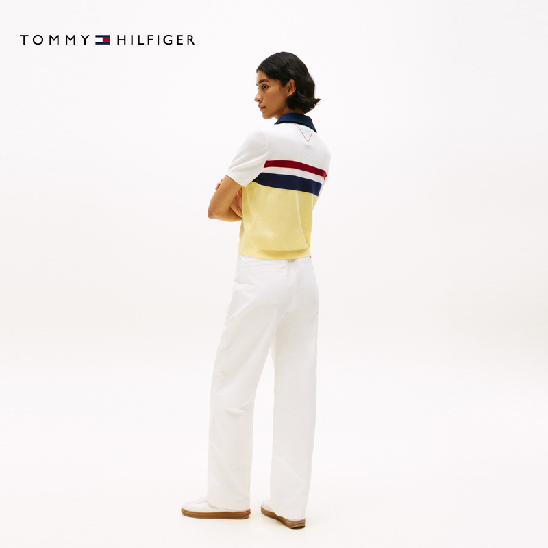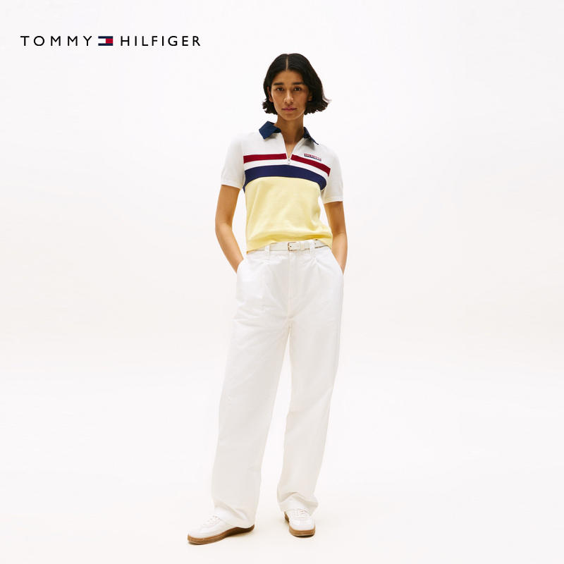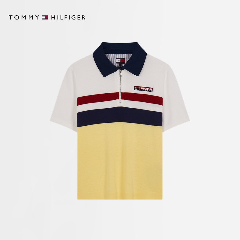 【航海系列】Tommy25春夏新款女装纯棉拼色半拉链短袖T恤POLO衫
