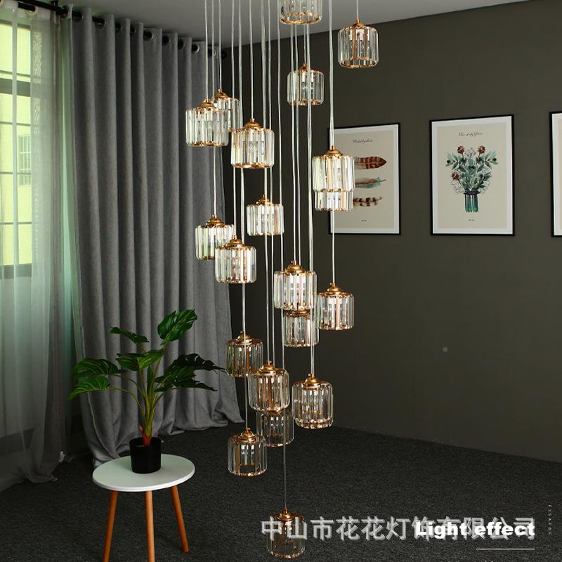 轻复式楼大吊灯客厅简408跃约楼梯间现代别墅中空层大厅后水晶灯