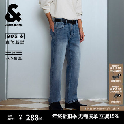 903杰克琼斯秋季四季恒温复古猫须水洗男装长裤子直筒牛仔裤男款