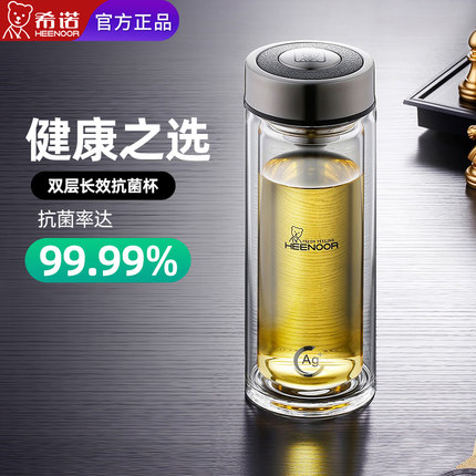 希诺双层玻璃杯抗菌水杯男女士家用杯子泡茶杯官方旗舰店生日礼物