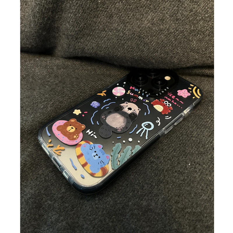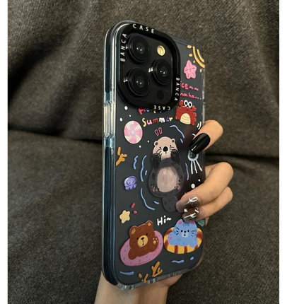 ins水獭派对适用苹果16promax手机壳iphone14pro新款13卡通12可爱11保护套15promax全包黑框x硅胶xr软壳xsmax