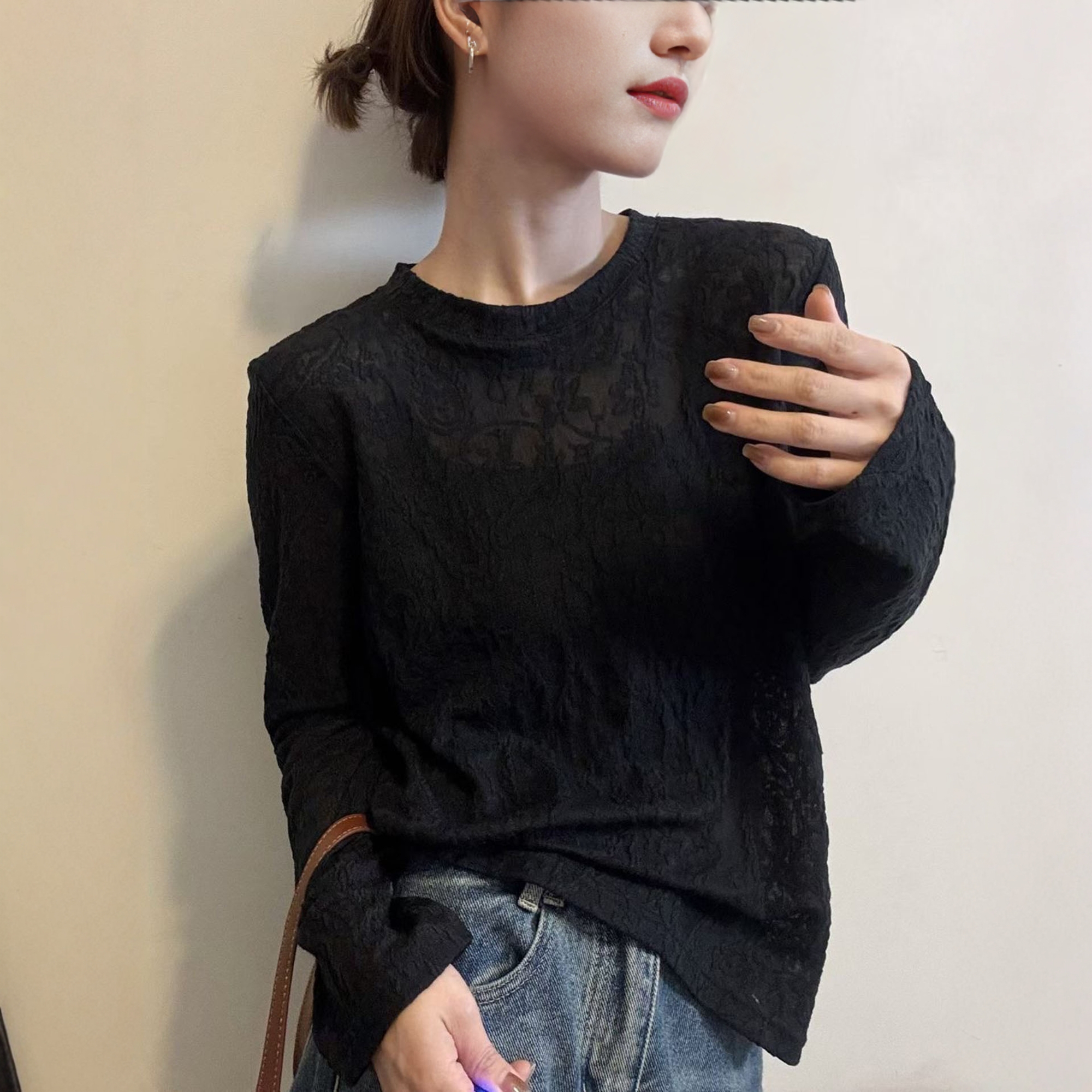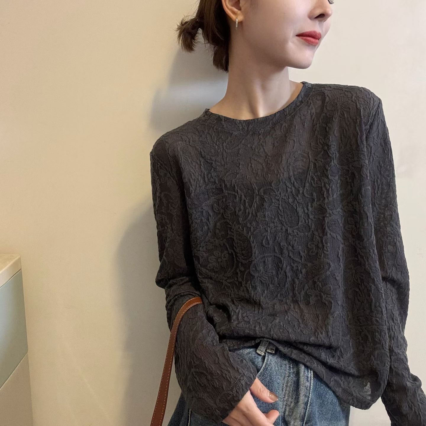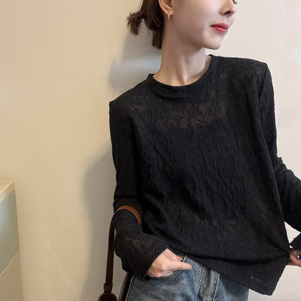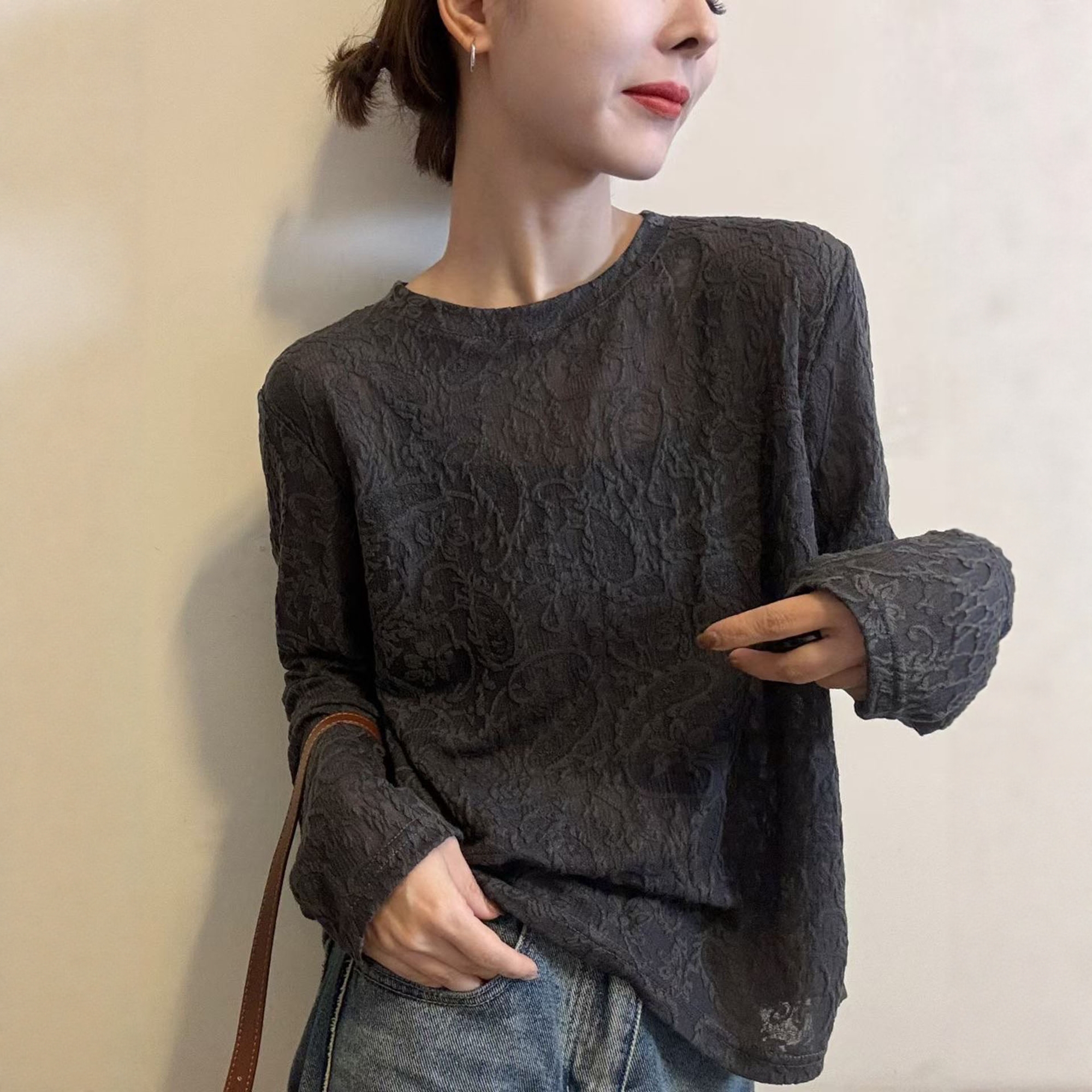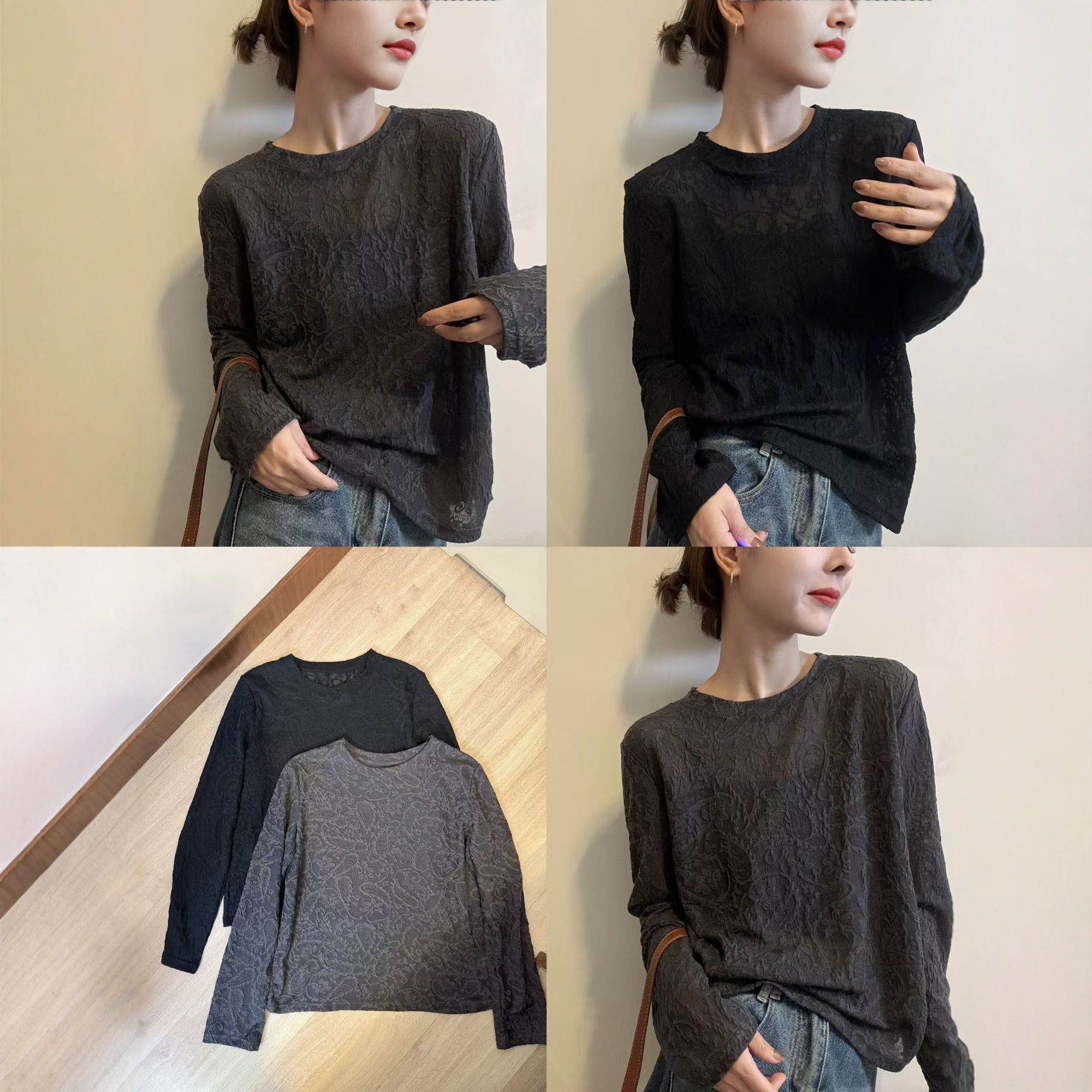 立体刺绣肌理感长袖T恤女欧洲站2025秋装新款欧货女装打底小衫潮