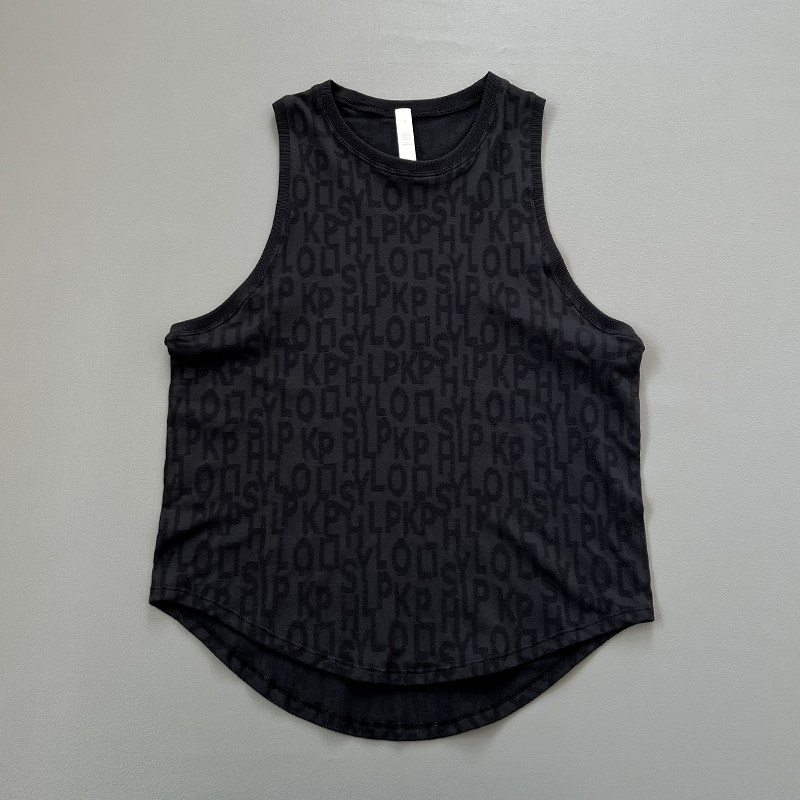 新工字运动背心女夏季轻簿印花宽松瑜伽服罩衫跑步马拉松无袖上衣