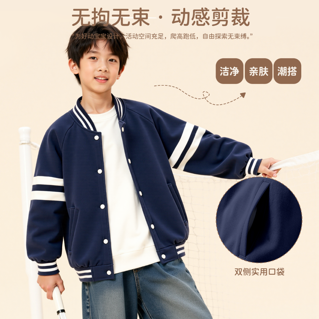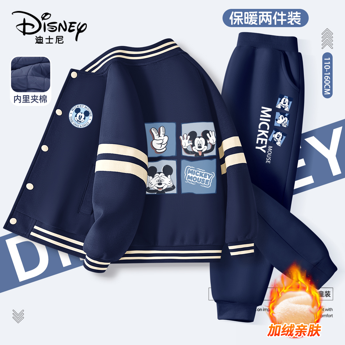 迪士尼童装男童冬装套装加厚夹棉棒球服两件套儿童冬装加绒卫裤潮