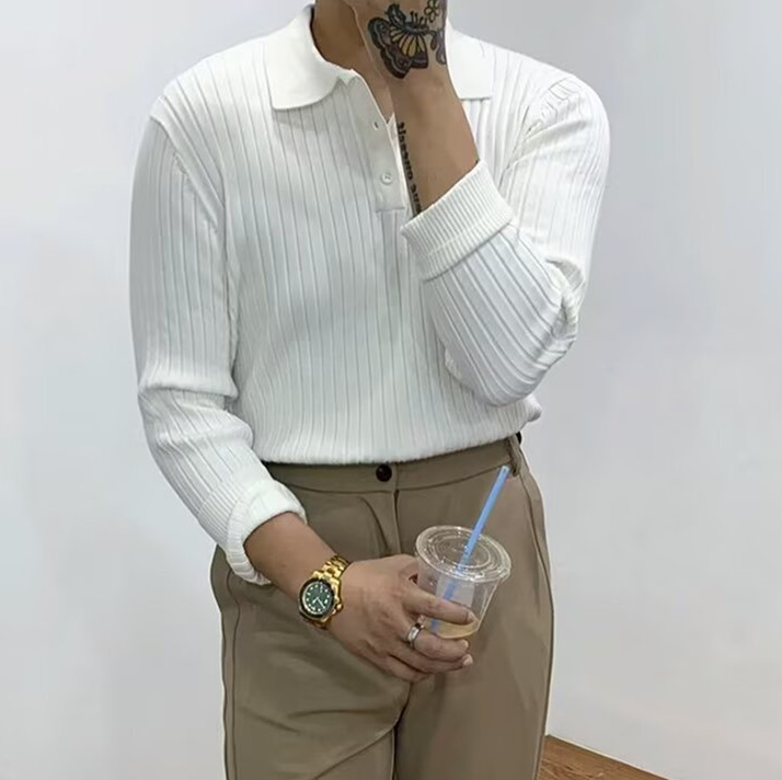 轻熟风翻领毛衣修身健身POLO衫
