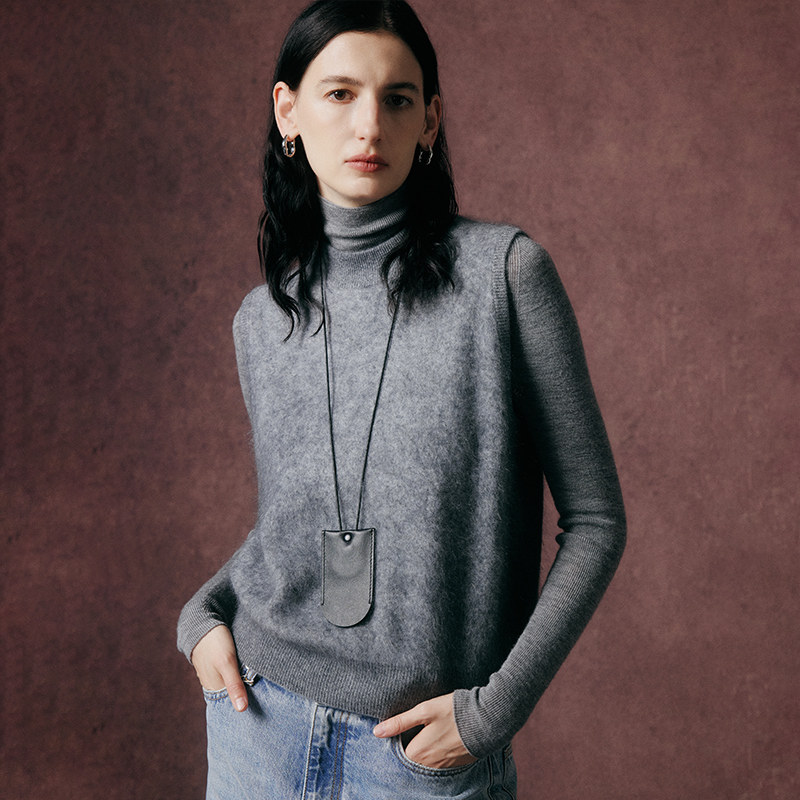 帕罗商场同款秋冬纯羊绒圆领高级无袖针织背心毛衣女2AA1T1016X