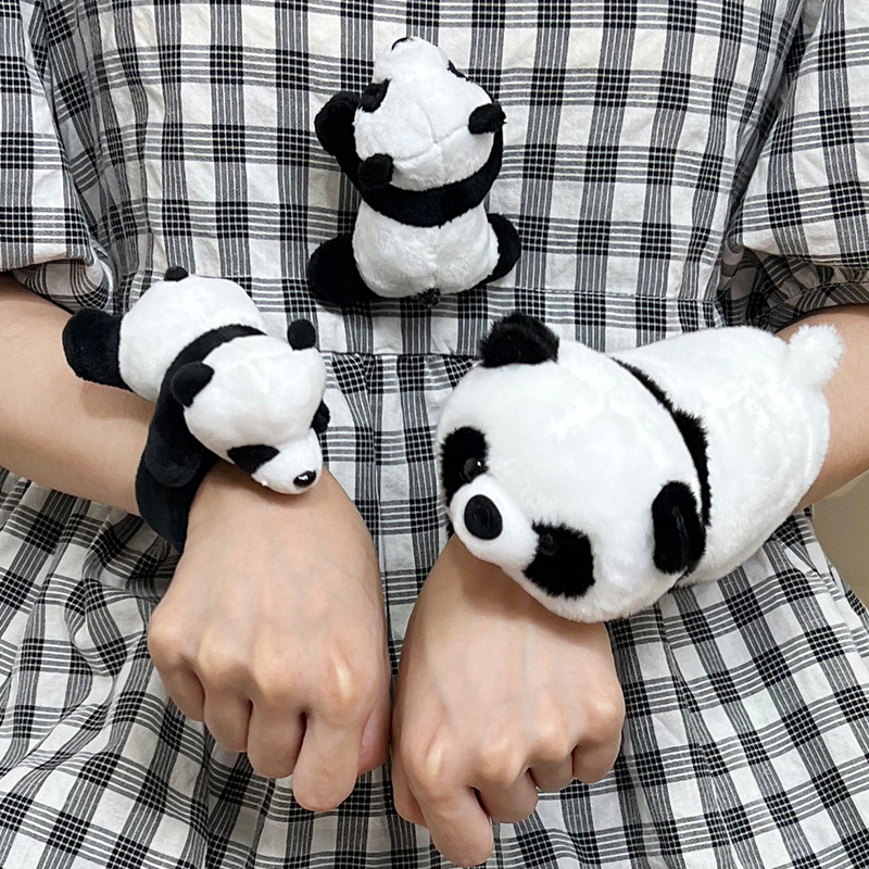 创意玩偶熊猫拍拍圈手环儿童毛绒公仔玩具手办礼品电动自行车配饰