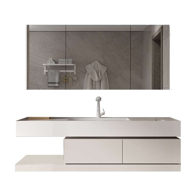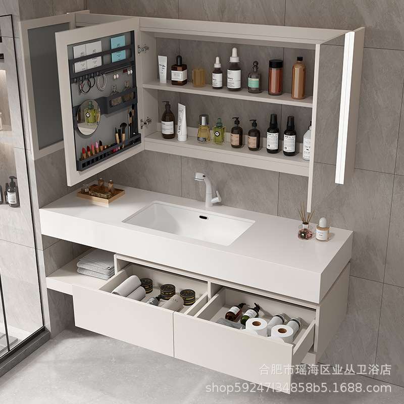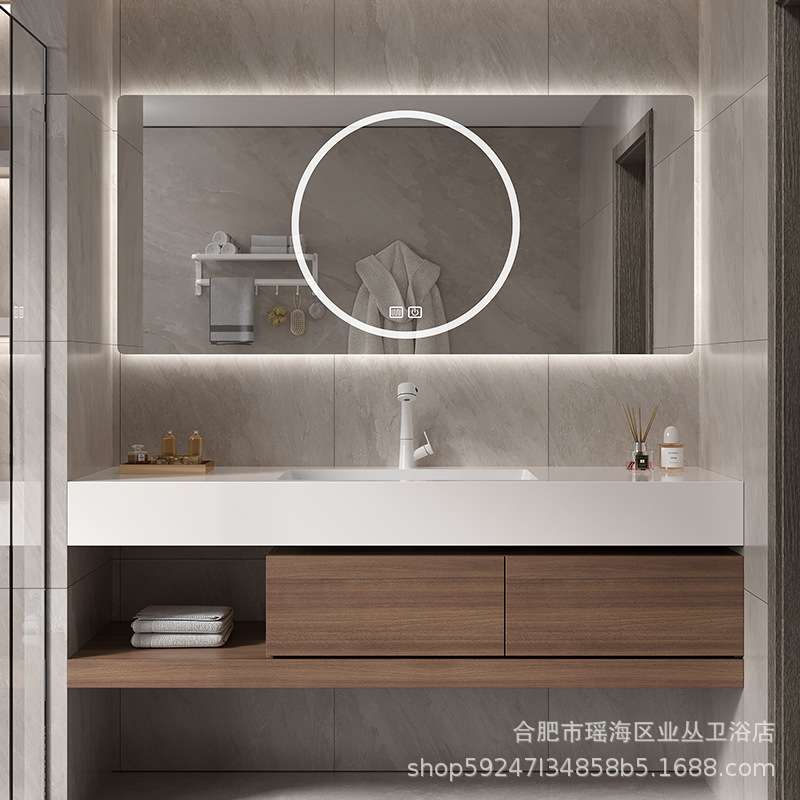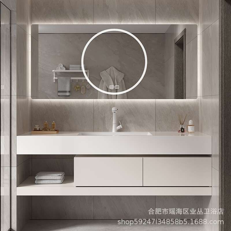 轻奢风浴室柜组合岩板无缝陶瓷一体盆卫生间吊柜洗漱台洗手脸盆柜