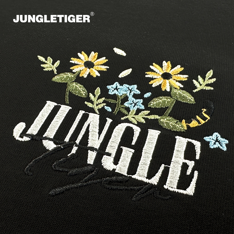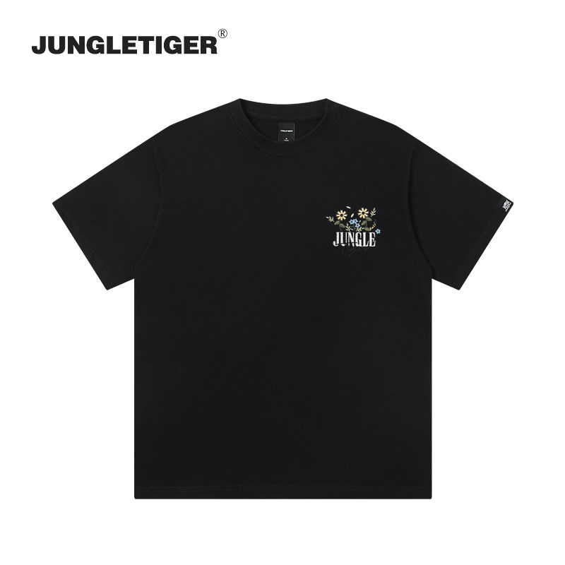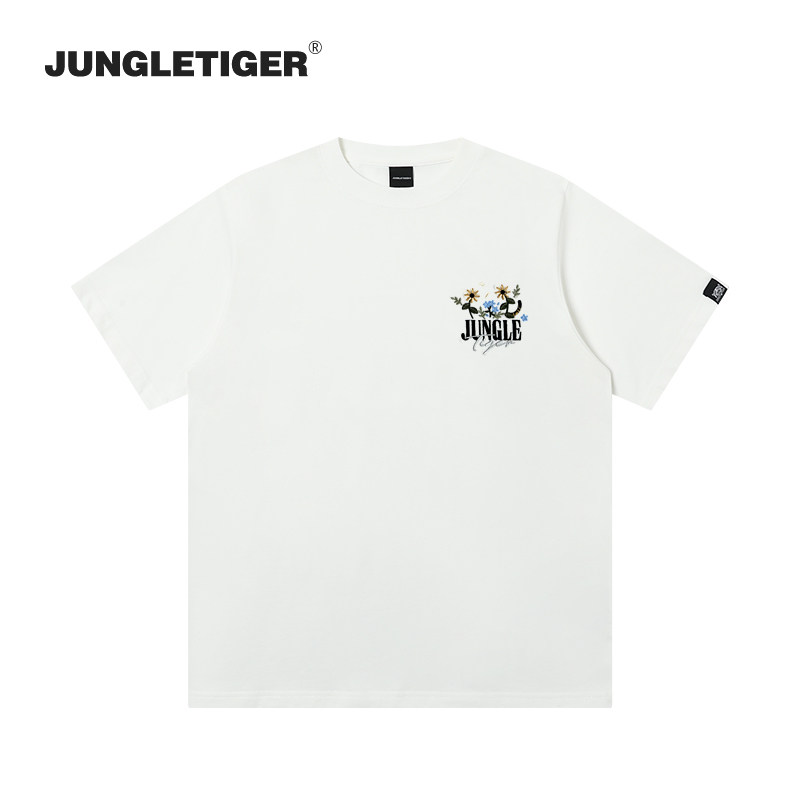 丛林老虎简约小花刺绣短袖T恤男